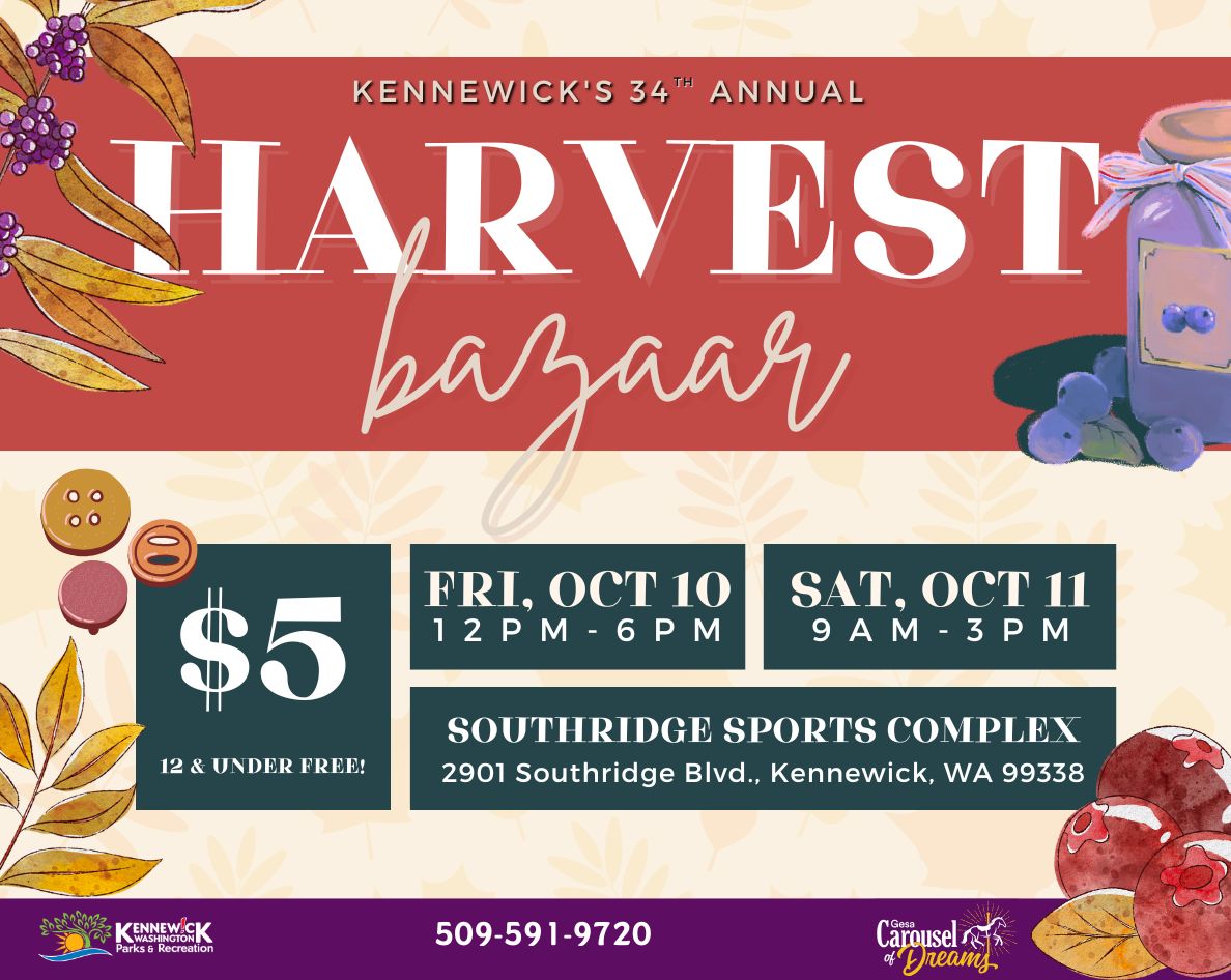 The annual 34th Harvest Bazzar is returning to the Southridge Sports Complex on October 10 and 11. Shop over 70 vendors featuring arts, crafts, food, holiday decor, home accents and more!